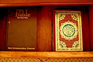 Hotellimme lipastossa raamattu ja koraani ovat sulassa sovussa samassa vetolaatikossa.