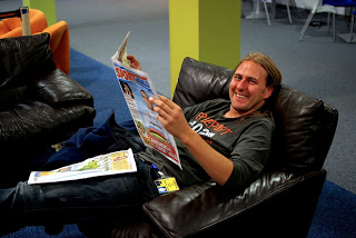 YLElle kuvannut Thierry lueskeli vapaa-ajalla ranskankielistä lehteä.