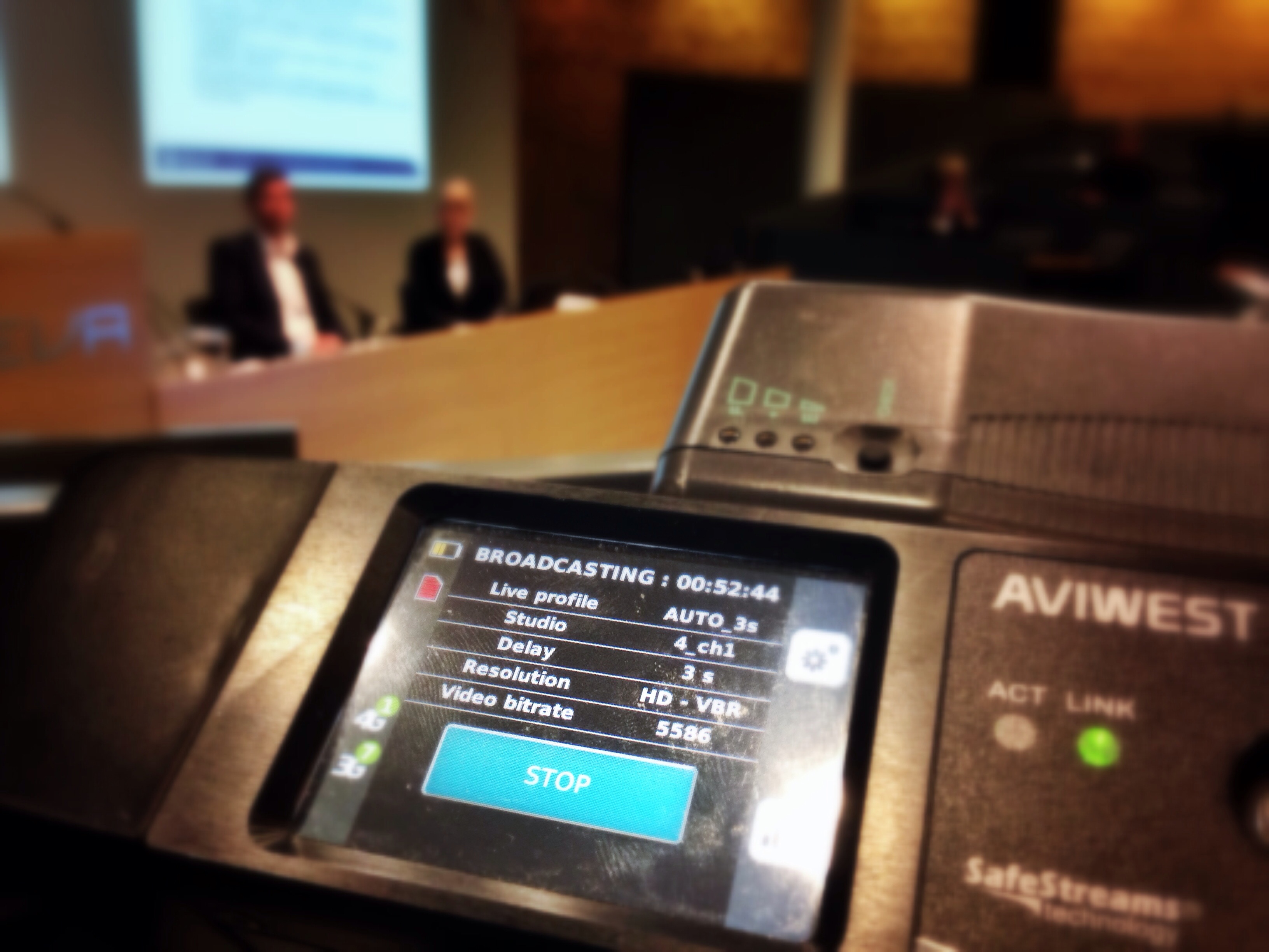 Kysymyksessä oli perinteinen Aviwest -suora, joka tehtiin täysin omilla laitteilla. Ethernet -yhteyttä ei auditoriossa ollut ja ainut XLR ulostulo audiolle antoi vain tiukkaa brummia. Aviwestin 8 mokkulaa puski ulos 3000 – 6000 kt vauhtia, joten se riitti hyvin netin tarpeisiin. Langattomia kapuloitamme piti minun ja Ylen kuvaajan käydä siirtelemässä vähän väliä puhujien vaihtuessa pöydän toisella puolen.